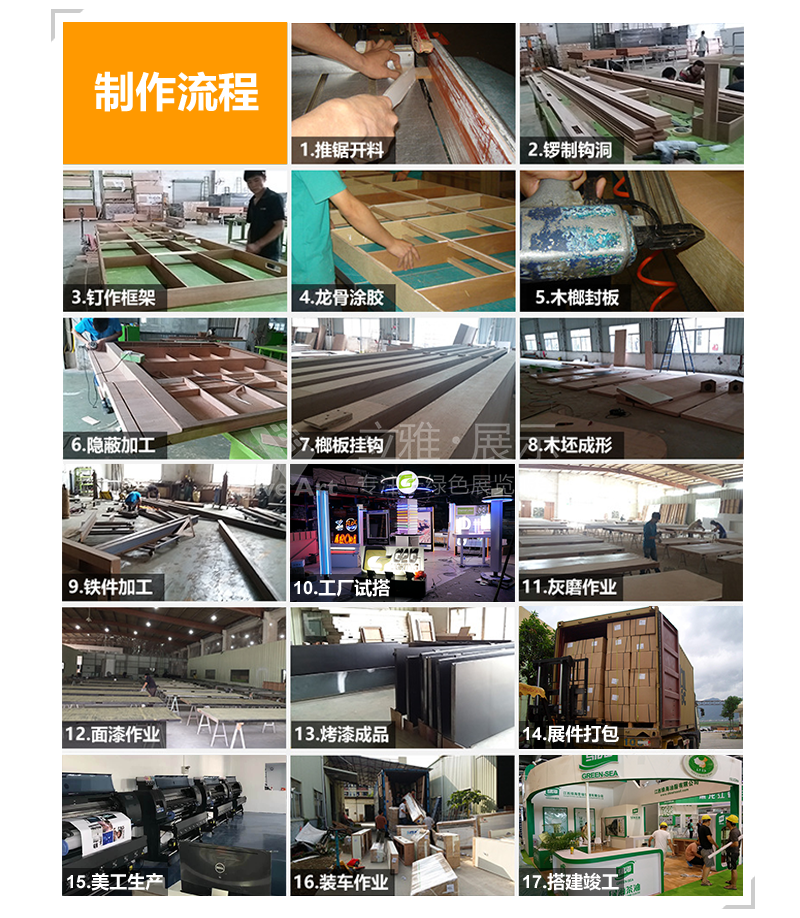 大面積的廠房,滿足不同大小尺寸展臺制作