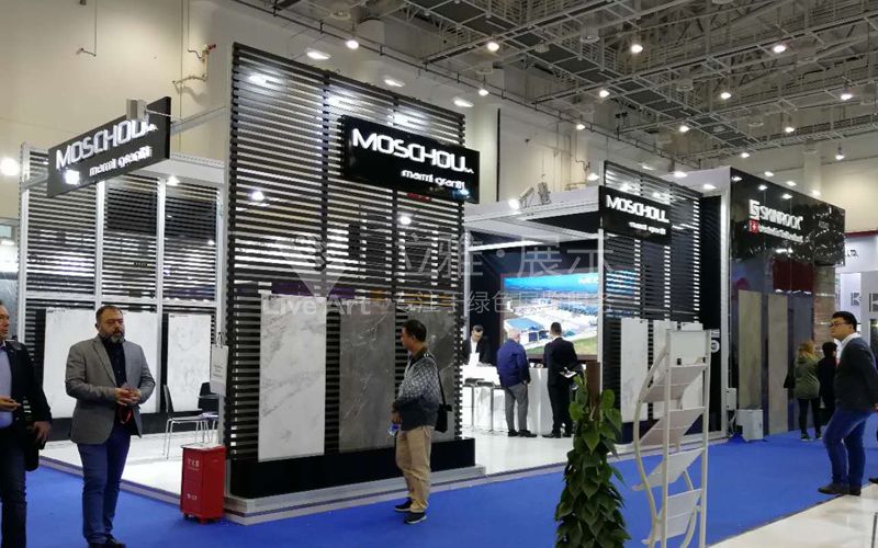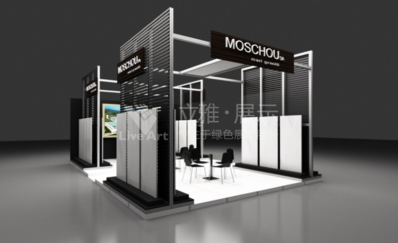 項目背景:中國廈門國際石材展促進(jìn)我國石材行業(yè)的發(fā)展與對外貿(mào)易的往來,搭建國際石材行業(yè)專業(yè)交流平臺。MOSCHOU是國外企業(yè),立雅為其提供展臺搭建服務(wù),以80mm方柱鋁型材,搭配環(huán)保覆塑木線條結(jié)構(gòu),整體外形方正簡約,襯托簡潔、大氣的展臺風(fēng)格。