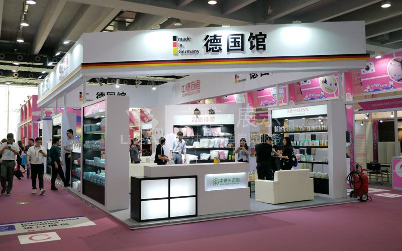 項目背景:中德商通是一個專為中國消費者打造的平價跨境電子購物平臺。在122屆廣交會中德商通以展示母嬰用品產品為主,立雅展示結合品牌形象及產品特性,展臺設計搭建以白色為主基調,整個門頭采用鐵架結合熱轉印布飾制作,加以三種顏色背膠裝飾門頭,與德國國旗三色相呼應,并修飾門頭,搭配簡潔黑白色組合的展示柜及前臺,使展臺整體搭建簡約而不失大氣,達到客戶滿意的效果。