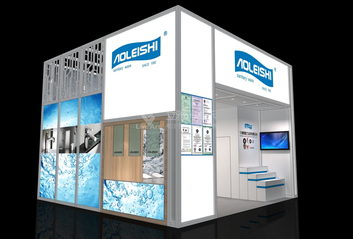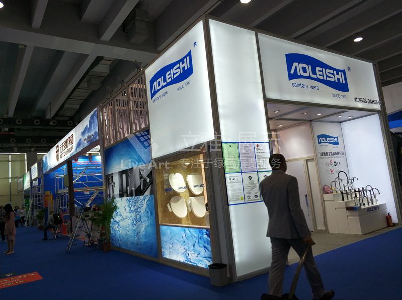 項(xiàng)目背景:寧波奧雷士潔具有限公司,是 一家集開發(fā)、生產(chǎn)、經(jīng)營“奧雷士”系列陶瓷閥門水嘴、衛(wèi)生潔具及配件的企業(yè),立雅展示結(jié)合奧雷士企業(yè)形象及產(chǎn)品特性,采用全鋁型材搭建展臺(tái),符合廣交會(huì)綠色環(huán)保理念,搭配大篇幅的高清UV噴繪,達(dá)到比效果圖更絢麗的展示效果。