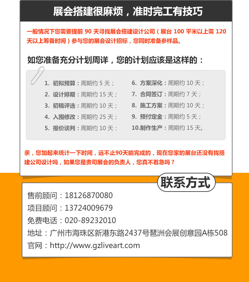 立雅至今擁有15年的展臺設計搭建經(jīng)驗,擁有數(shù)名資深設計師和一支優(yōu)秀的施工團隊,提供展臺設計、展臺搭建、展臺全程跟蹤的一站式服務,是廣交會指定的綠色特裝搭建商,選擇立雅,成就完美展臺!歡迎致電立雅展示。