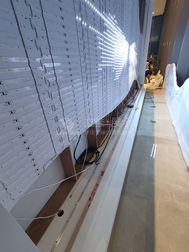充分考慮到體驗(yàn)館玻璃墻面,墻面與墻面之間立柱的影響,利用編程式數(shù)字多媒體墻面,完美避開立柱的影響,將玻璃立柱融入到品牌墻之中,使其不影響品牌墻文案展現(xiàn)。