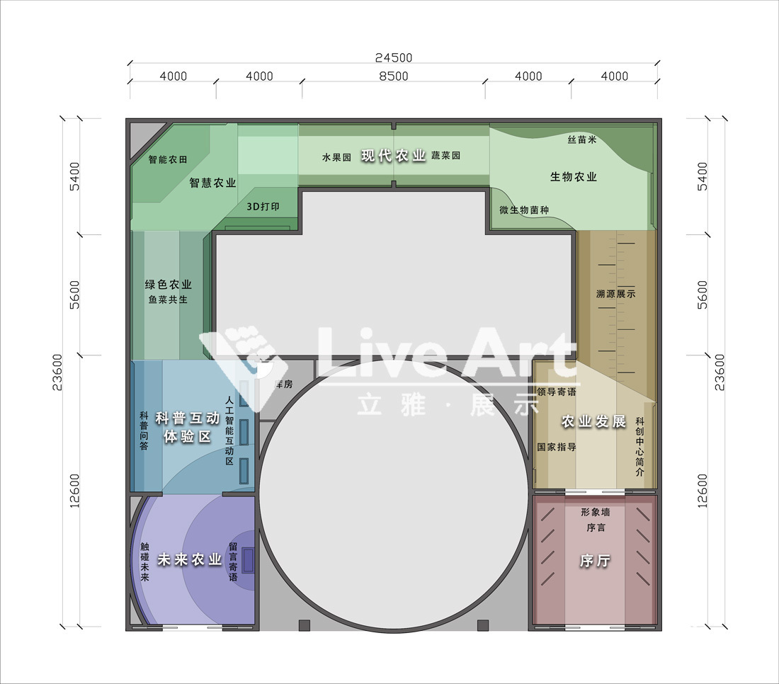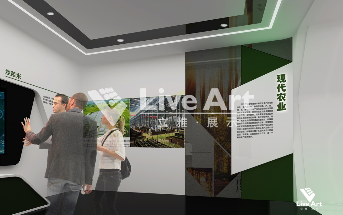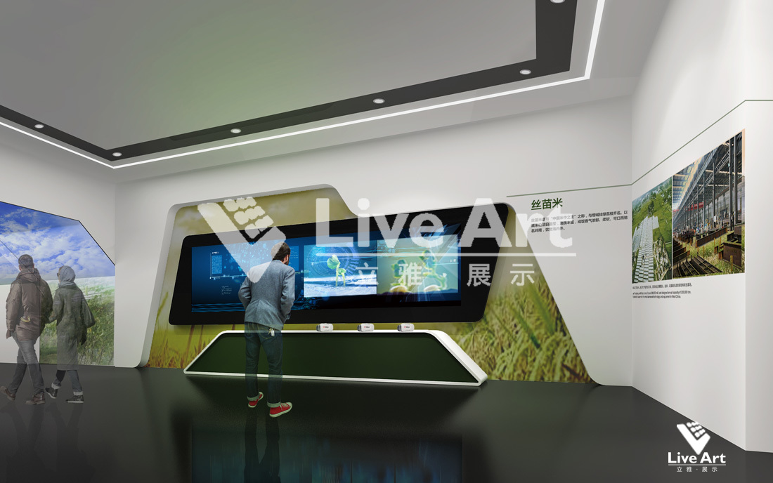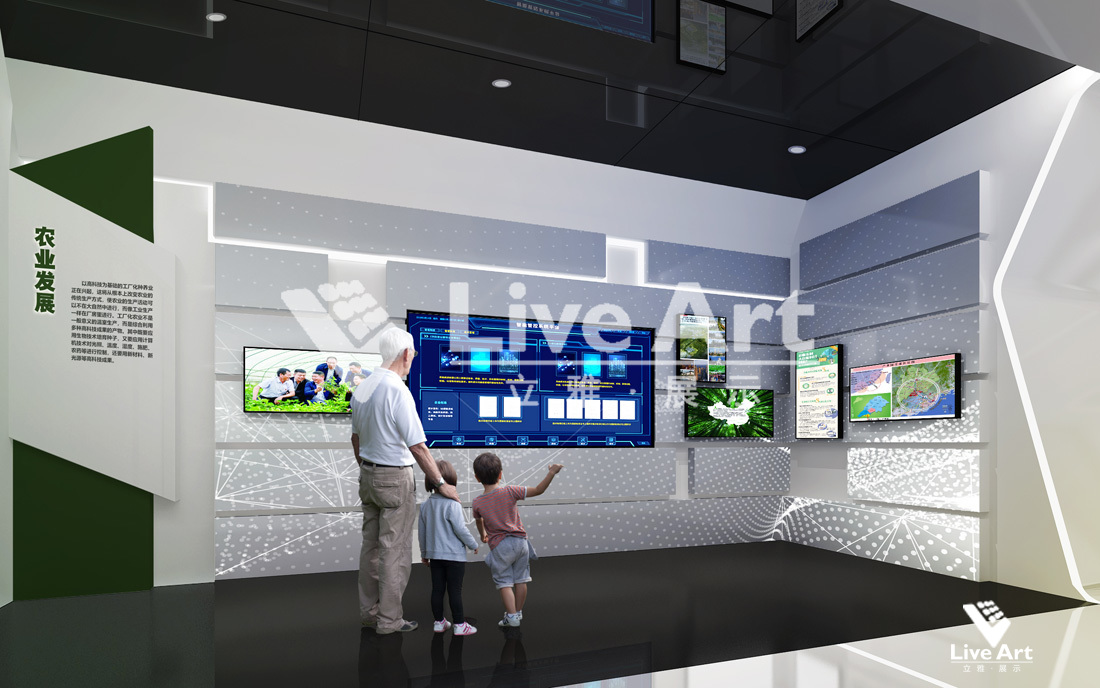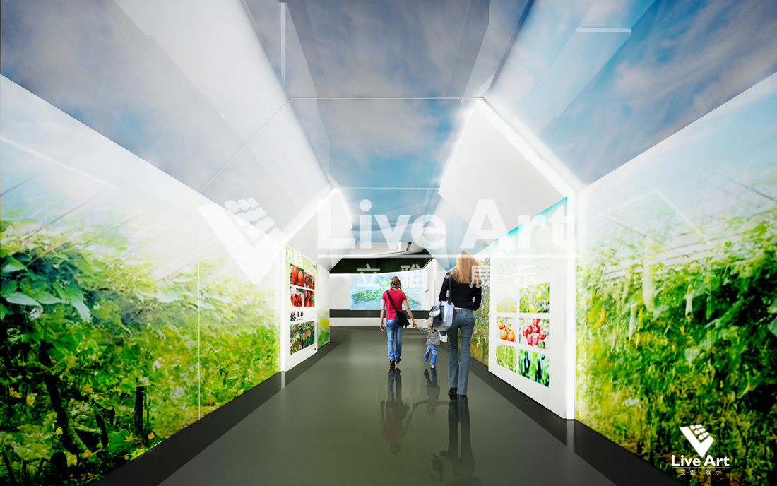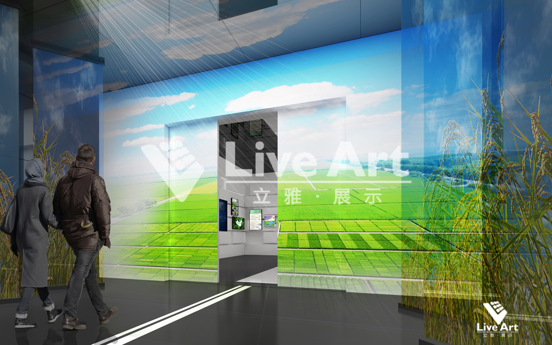 廣東省農(nóng)業(yè)科創(chuàng)中心展廳是個(gè)科普展廳,旨在向群眾推廣現(xiàn)代農(nóng)業(yè)種植技術(shù),關(guān)推廣農(nóng)產(chǎn)品,因此展廳里設(shè)置了VR體驗(yàn)區(qū),科普問(wèn)答等多種互動(dòng)裝置,讓觀眾切身體驗(yàn)農(nóng)產(chǎn)品的種植過(guò)程,并感受現(xiàn)代科技下的農(nóng)業(yè)種植;設(shè)置農(nóng)產(chǎn)品體驗(yàn)區(qū),并與電商合作,加上5G概念,讓觀眾可以看到實(shí)際的產(chǎn)品的同時(shí),也可以通過(guò)掃碼購(gòu)買農(nóng)產(chǎn)品。