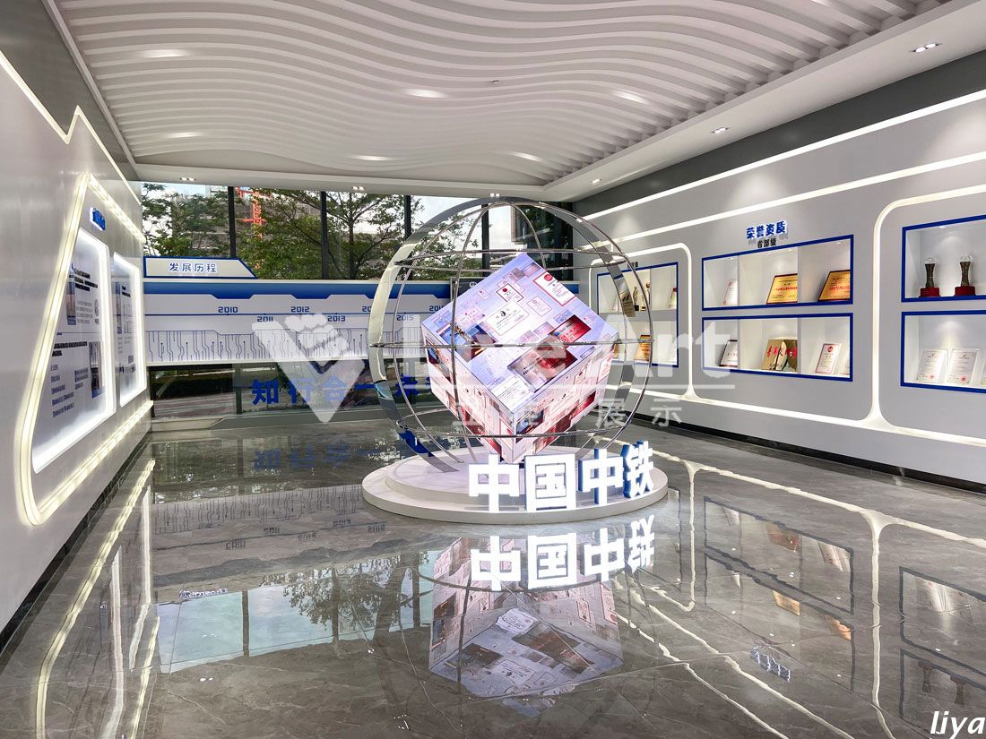 通過線條的形變、聚散、運動等不同形態(tài)的演繹,呈現(xiàn)出前沿中鐵,榮創(chuàng)未來的品質(zhì)感和使命感,進(jìn)一步強(qiáng)化布展主題。