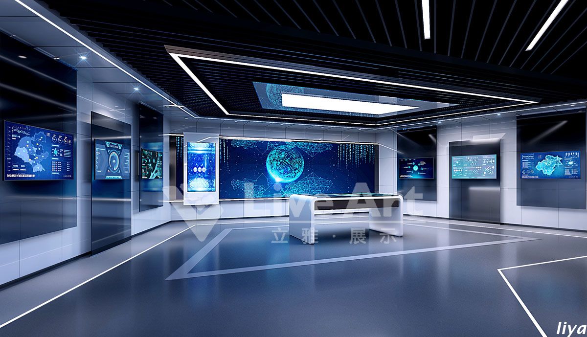 應(yīng)用場(chǎng)景:以CAVE空間,生動(dòng)展示公共數(shù)據(jù)資源開發(fā)利用應(yīng)用場(chǎng)景、形成的服務(wù)及產(chǎn)品、數(shù)據(jù)超市、產(chǎn)生的社會(huì)及經(jīng)濟(jì)效益等相關(guān)內(nèi)容。 空間一側(cè)的墻面上設(shè)置屏幕,分別介紹數(shù)據(jù)開發(fā)利用的基本介紹及團(tuán)隊(duì)能力。