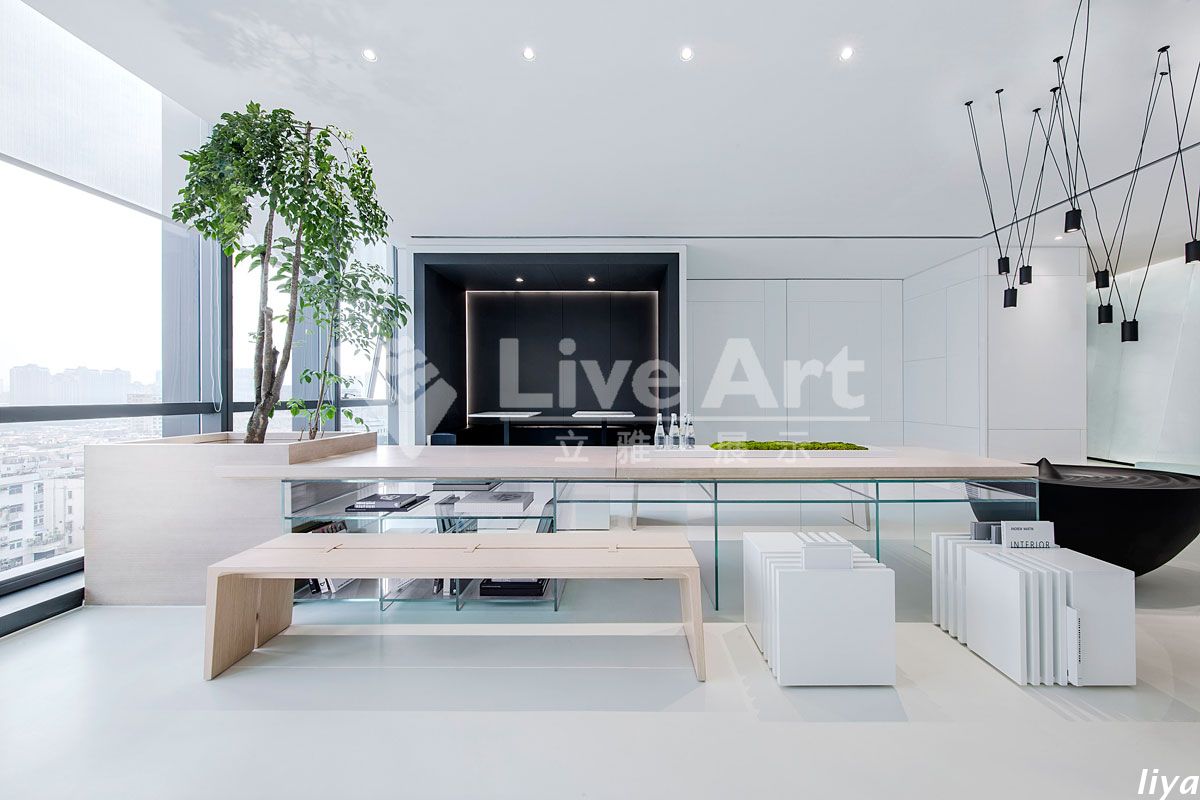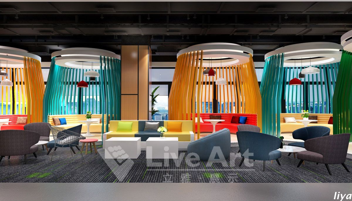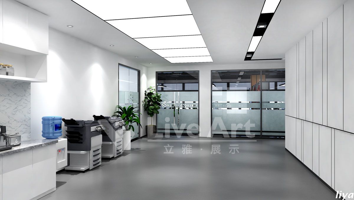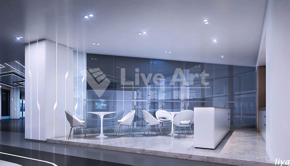 茶歇區(qū):空間中放置休閑座椅,方便參觀者在此休憩及溝通;打造水吧區(qū)域,為在此洽談的參觀者、客戶提供接待服務(wù)。