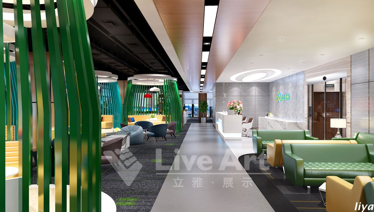 商務(wù)合作平臺(tái):展廳中的通道區(qū)域,作為展廳中的商務(wù)合作展示平臺(tái),可以邀請(qǐng)合作伙伴在此進(jìn)行其品牌、產(chǎn)品的宣傳介紹。