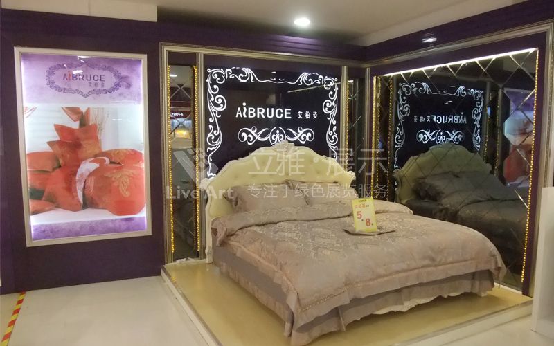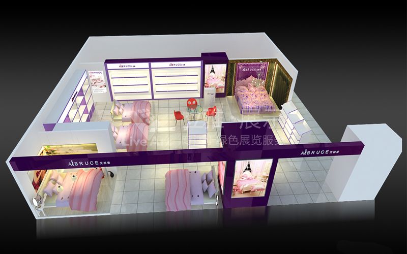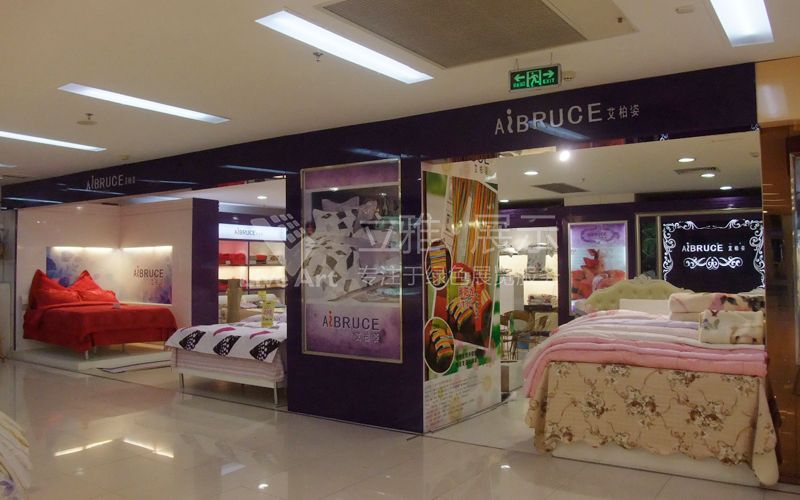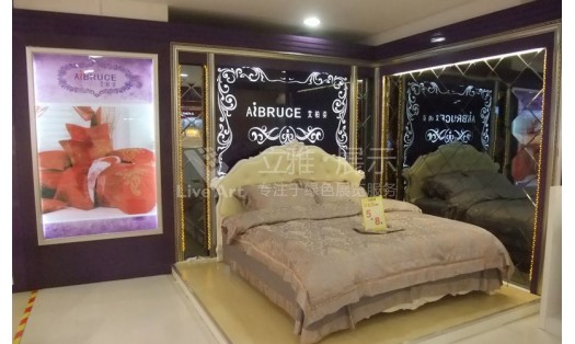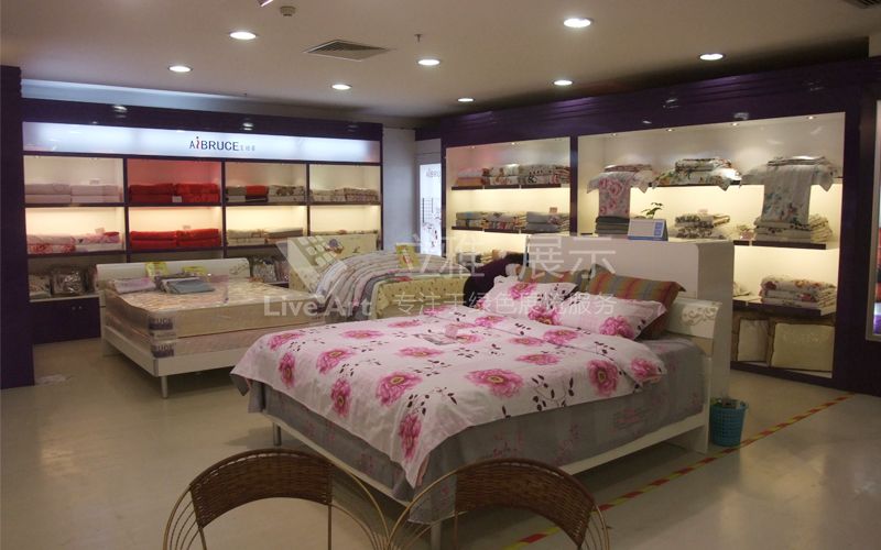 店鋪裝修特色:艾柏姿是一家室內(nèi)以銷售床上用品的終端展示店鋪,紫色寓意高貴大氣,以紫色為輔助色調(diào),店鋪四周結(jié)合LED燈裝飾,內(nèi)部壁墻設(shè)計展示柜,節(jié)省空間的同時更顯整潔性。