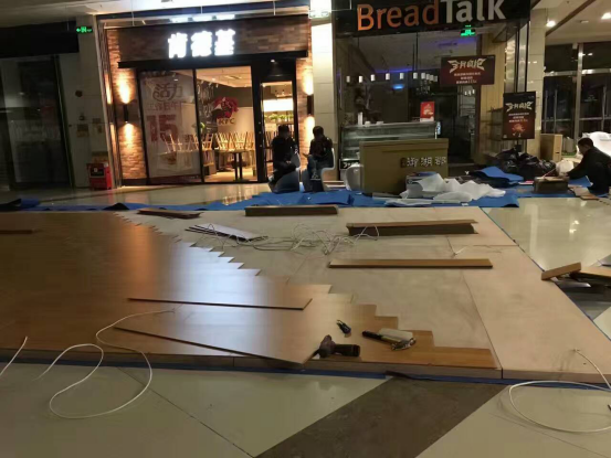 六個(gè)展點(diǎn)展廳規(guī)劃面積均為30㎡左右,融合御湖郡高端大氣的特點(diǎn)選擇以玫瑰金為主色調(diào),搭建不銹鋼45°斜包邊木結(jié)構(gòu)地臺(tái)。展廳設(shè)計(jì)多個(gè)大邊框宣傳畫面,均以木烤漆、LED發(fā)光UV軟膜燈箱結(jié)合,品牌字以不銹鋼包邊樹脂發(fā)光字展示。室外展廳考慮天氣問題搭建玫瑰金鐵架鋁塑板頂棚,整個(gè)頂棚色調(diào)貼合展廳設(shè)計(jì)感。